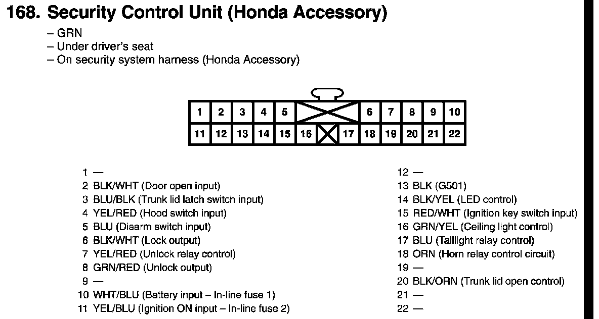View 168 Security Control Unit Connector View (Honda Accessory)