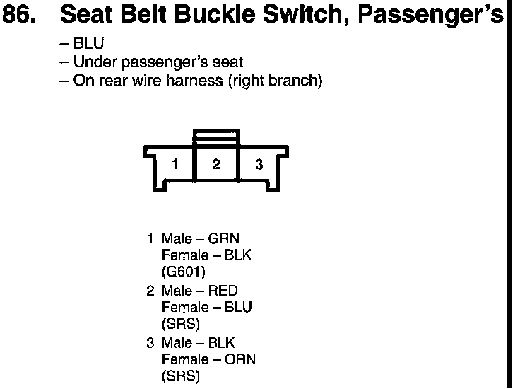 View 86 Passenger's Seat Belt Buckle Switch Connector View