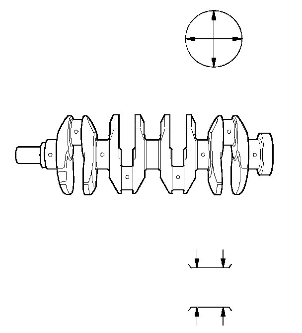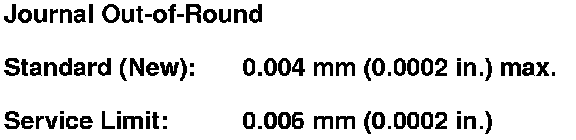 4. Measure the out-of-round at the middle of each rod and main journal in two places of the cross direction. The difference between measurements on each journal must not be more than the service limit.