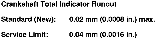 8. Measure the runout on all of the main journals. Rotate the crankshaft two complete revolutions. The difference between measurements on each journal must not be more than the service limit.