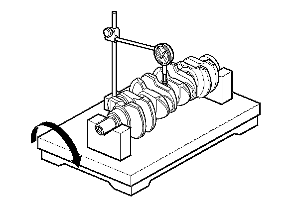 7. Check the total runout with the crankshaft supported on V-blocks.