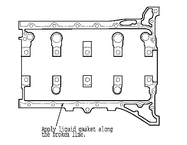 NOTE: Do not install the parts if 5 minutes or more have elapsed since applying liquid gasket. Instead, reapply liquid gasket after removing the old residue.