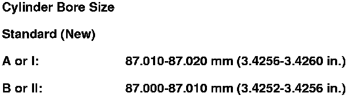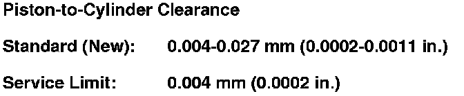 12. Calculate the difference between the cylinder bore diameter and the piston diameter. If the clearance is near or exceeds the service limit, inspect the piston and the engine block for excessive wear.