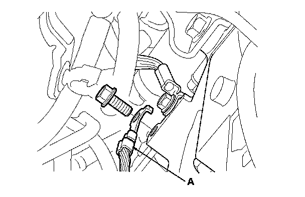 3. Remove the ground cable (A) on the rear end of the engine block.