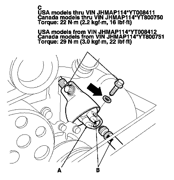 18. Tighten the upper support nut (A) (B) to the specified torque.