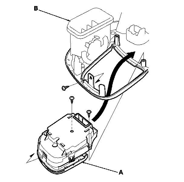 2. Remove the self-tapping screws and the HVAC control unit (A) from the instrument panel (B).
