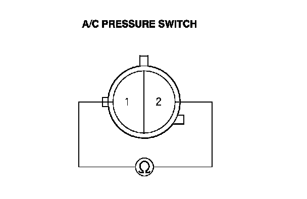 5. Check for continuity between A/C pressure switch terminals No. 1 and No. 2.