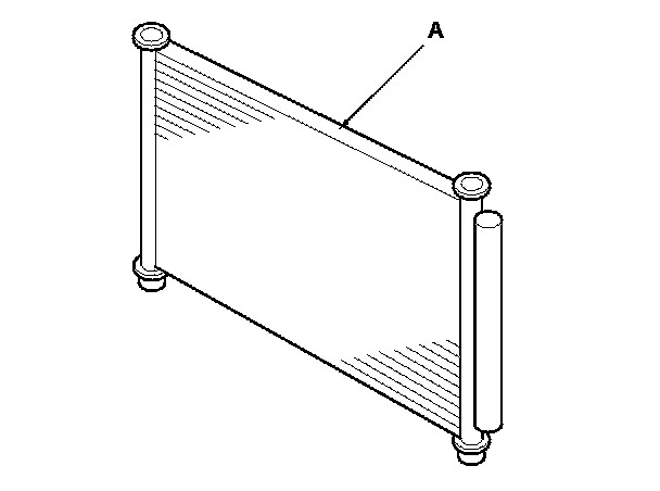 2. Check the A/C condenser (A) for material clogging the fins or for damage to the fins: