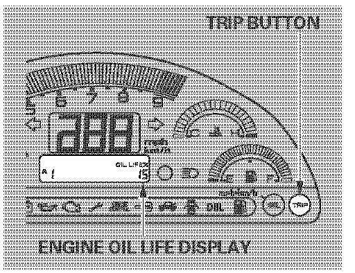 To see the current engine oil life, turn the ignition switch to the ON (II) position and push and release the TRIP button repeatedly until the engine oil life display appears.