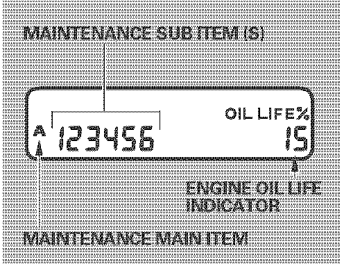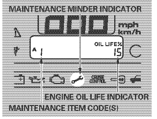 If the remaining engine oil life is 15 to 6 percent, you will see the engine oil life indicator every time you turn the ignition switch to the ON (II) position. The maintenance minder indicator will also come on, and the maintenance item code(s) for other scheduled maintenance items needing service will be displayed next to the engine oil life indicator.