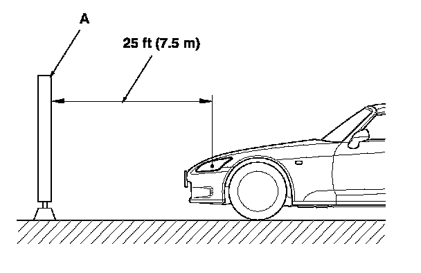 2. Park the vehicle 25 ft (7.5 m) away from a wall or a screen (A).