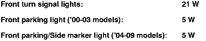 Front Turn Signal Light, Front Parking Light ('00-03 models), Front Parking/Side Marker Light ('04-09 models)