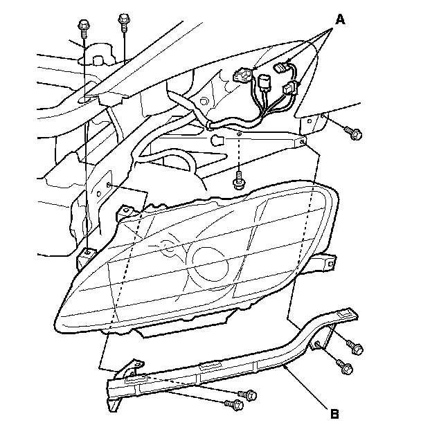 3. Disconnect the connectors (A) from the headlights.