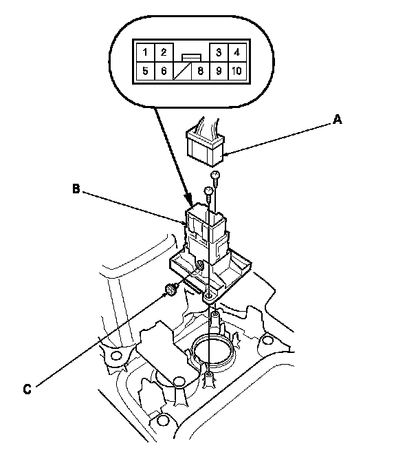 2. Disconnect the 10P connector (A) from the hazard warning switch (B).