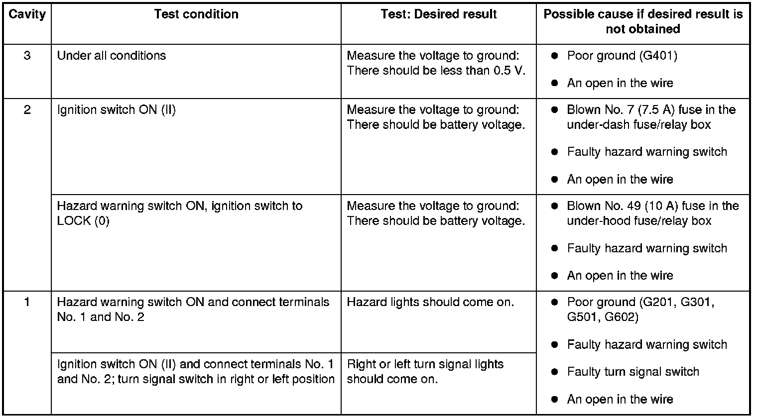 - If all the input tests prove OK, the turn signal/hazard relay must be faulty; replace it.