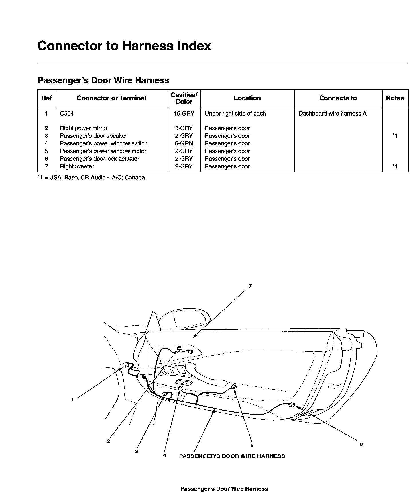 Passenger's Door Wire Harness Connector And Harness Locations