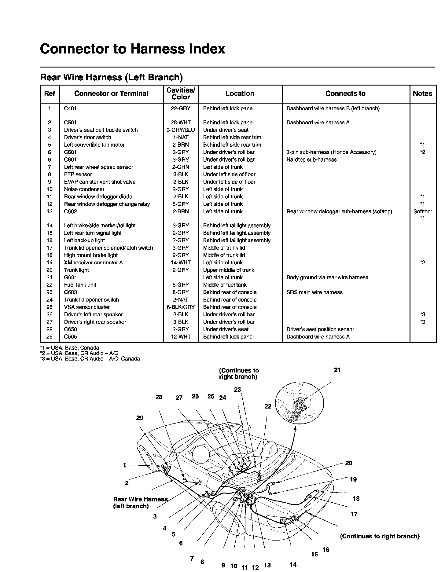 Rear Wire Harness (Left Branch) Connector And Harness Locations