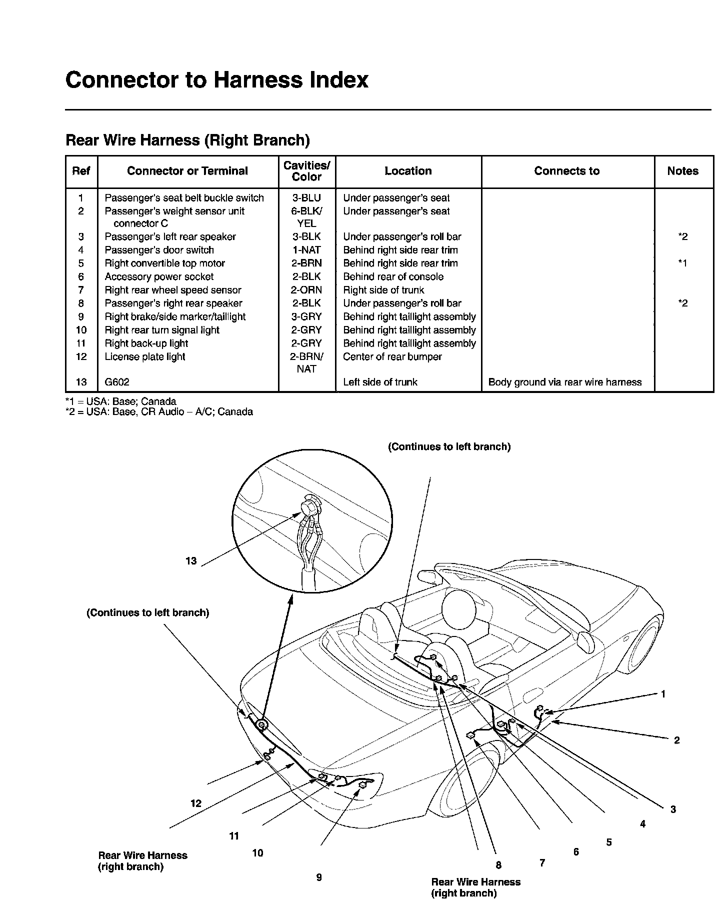 Rear Wire Harness (Right Branch) Connector And Harness Locations
