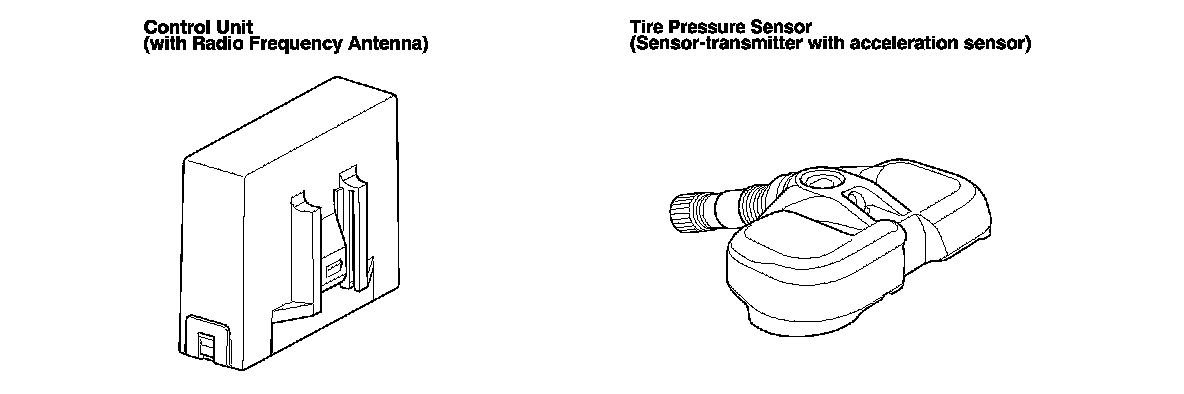 Each sensor is an integrated unit made up of the tire valve stem, a tire pressure sensor, and a transmitter. The unit is attached to the inside of the wheel, around the valve stem. The sensor transmits the internal tire information to the control unit once every 60 seconds when the vehicle speed exceeds 28 mph (45 km/h). When the TPMS control unit receives a tire pressure signal that is less than 175 kPa (1.8 kgf/cm2, 25 psi), the TPMS control unit then turns on the low tire pressure indicator. When that tire's pressure is increased to more than 200 kPa (2.0 kgf/cm2, 29 psi), and the vehicle is driven above 28 mph (45 km/h) the transmitter sends the tire pressure signal to the control unit, and then the control unit turns the indicator off.