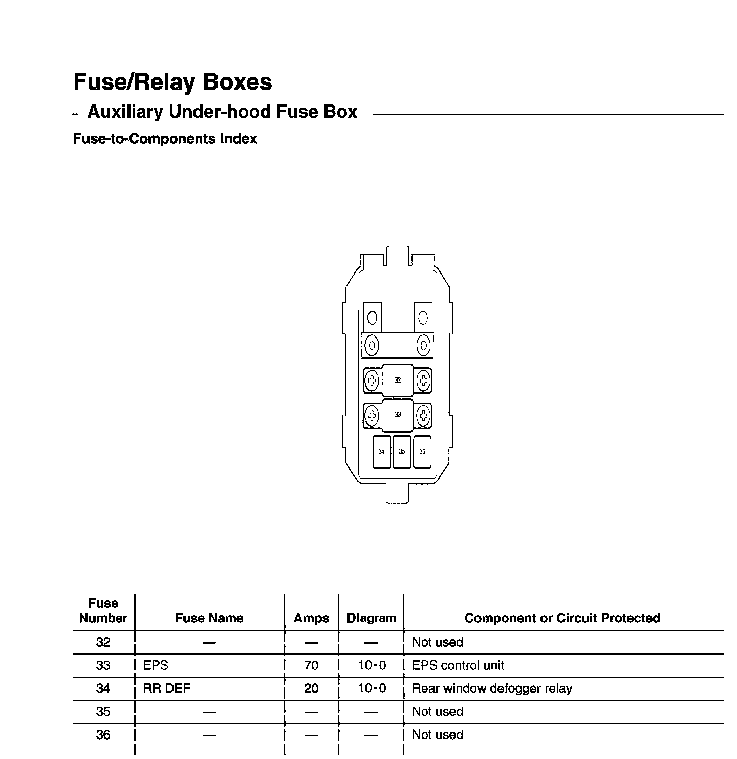 Auxiliary Under-hood Fuse Box - Fuse-to-Components Index