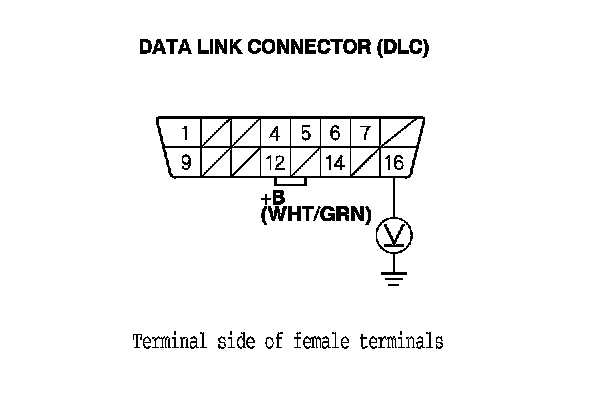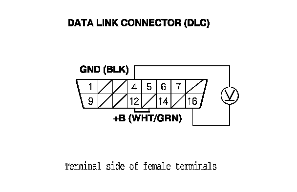 24. Measure the voltage between DLC terminal No. 16 and body ground.