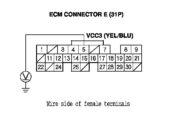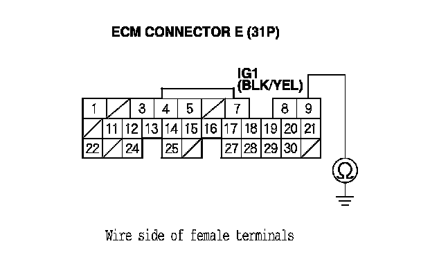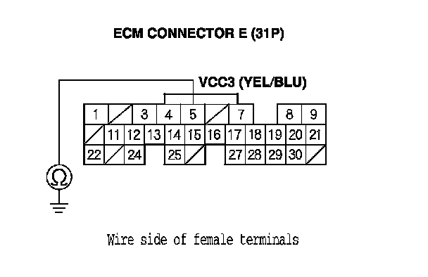 31. Check for continuity between ECM connector terminal E11 and body ground.