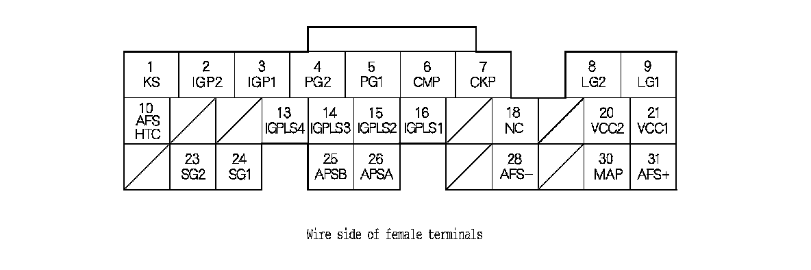 The CKP sensor detects crankshaft speed and is used by the ECM to determine the ignition timing, timing for the fuel injection of each cylinder, and engine misfire detection.