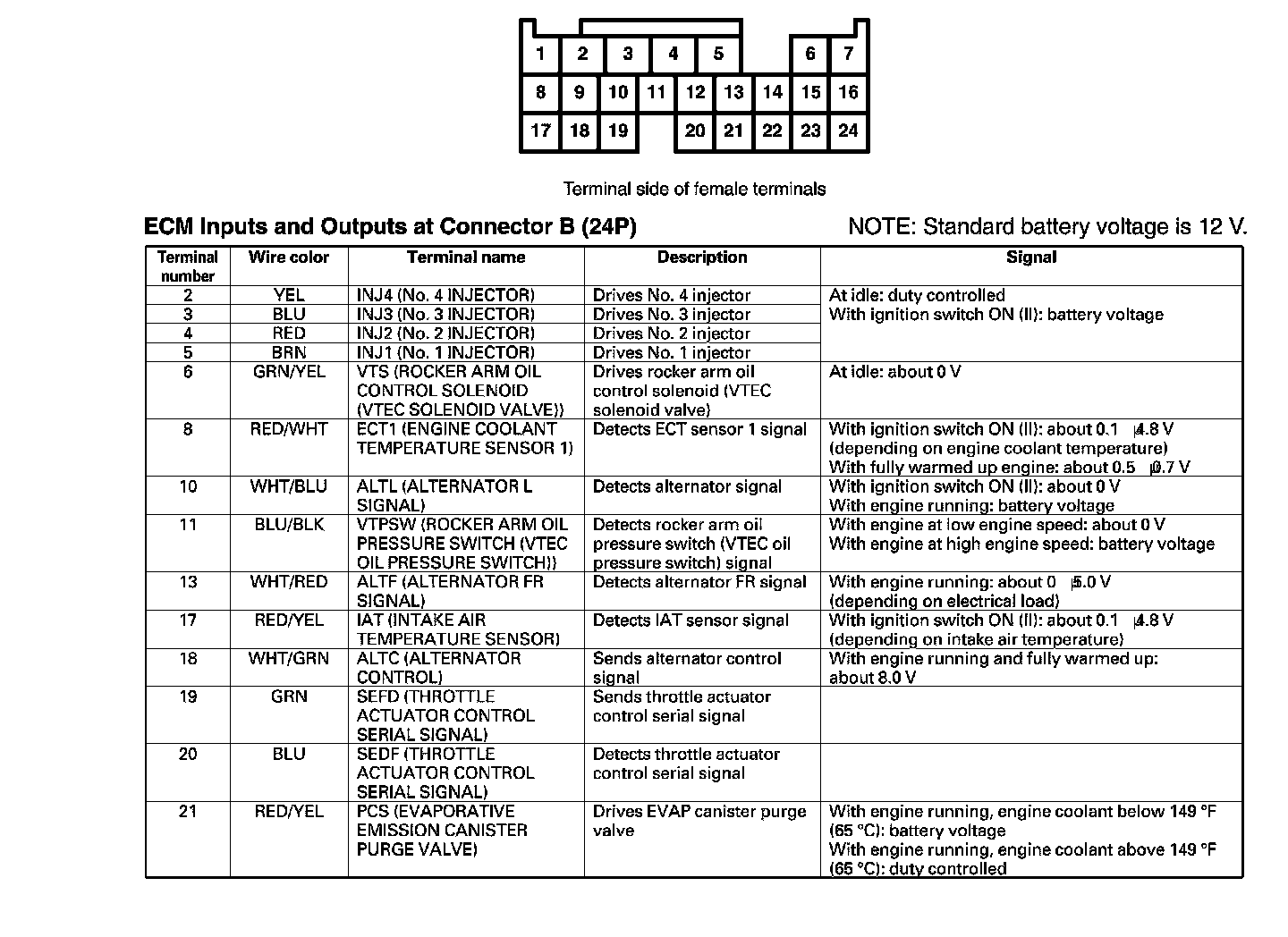 ECM Inputs And Outputs At Connector B