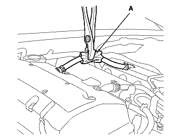 2. At idle, make sure there is a clicking sound from the PCV valve when the hose between the PCV valve and the intake manifold is lightly pinched (A) with your fingers or pliers.