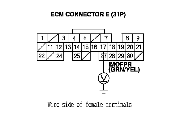 20. Turn the ignition switch to ON (II), and measure the voltage between ECM connector terminal E17 and body ground within 2 seconds.