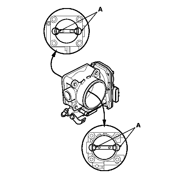 - To avoid removing the molybdenum coating, do not clean the bearing area of the throttle shaft (A).