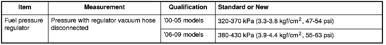Fuel Pressure: Specifications