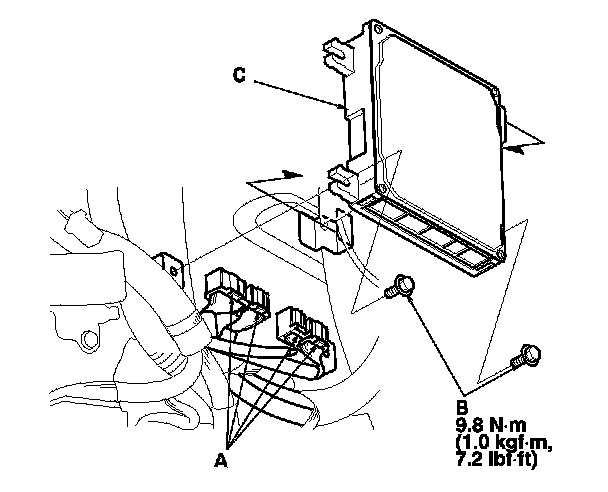 10. Remove the left side kick panel Service and Repair to expose the ECM.