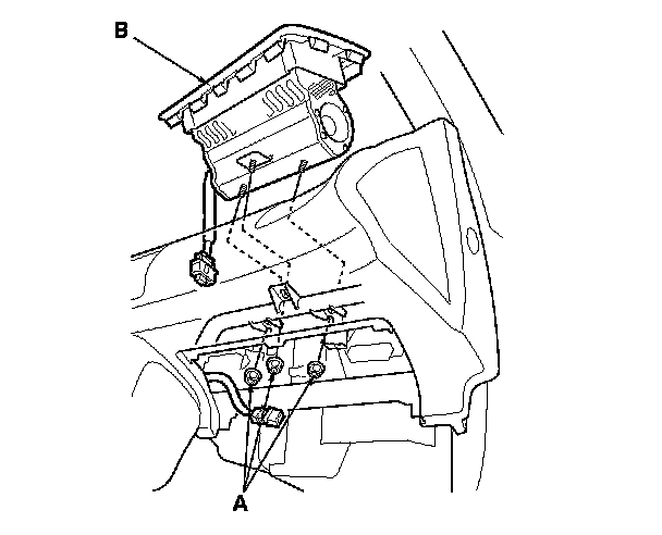 5. Insert the hooks (A) of the passenger's airbag housing into the new passenger's lid, then insert the other hooks (B) into the lid.