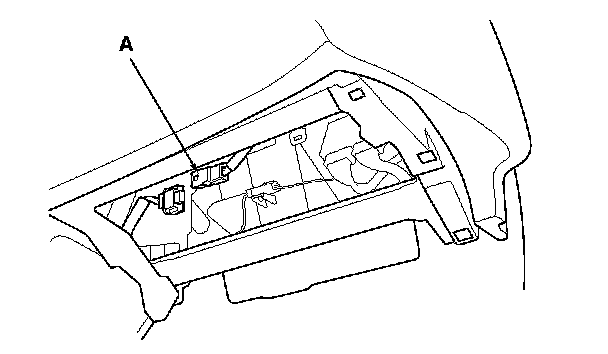 2. Remove the passenger's dashboard lower cover, Passengers Dashboard Lower Cover Removal/Installation then disconnect the passenger's airbag 4P connector (A) from the SRS main harness.
