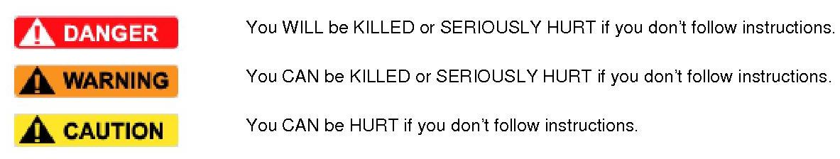 - Safety Messages - preceded by a safety alert symbol and one of three signal words, DANGER, WARNING, or CAUTION.