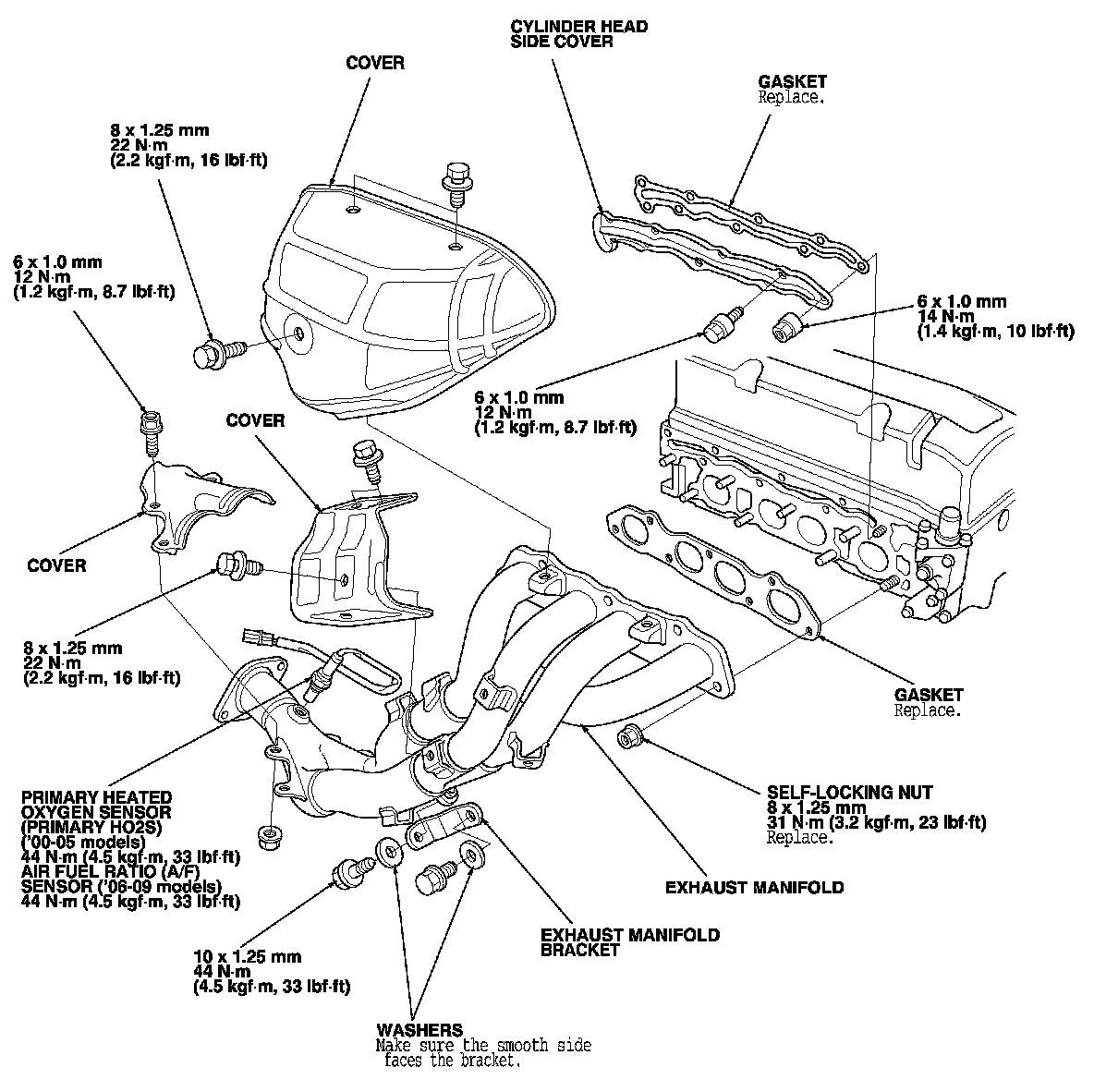 Cylinder Head Torque and SequenceTighten the cylinder head bolts in sequence to 29 N-m (3.0 kgf-m, 22 lbf-ft). Use a beam-type torque wrench. When using a preset click-type torque wrench, be sure to tighten slowly and do not overtighten. If a bolt makes any noise while you are torquing it, loosen the bolt and retighten it.