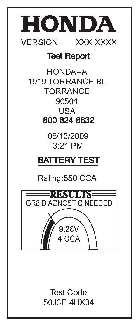 ^ All Honda 12-volt batteries are lead-acid (flooded type). No other battery types are accepted. If you try to submit a claim with a battery that was not tested as flooded, the claim will be returned to your dealership unpaid with an Error Code of 2084. See step 6 of USING THE ED-18 BATTERY TESTER or step 9 of USING THE GR8 DIAGNOSTIC STATION - ED-18 BATTERY TEST FUNCTION for how to test the battery.*