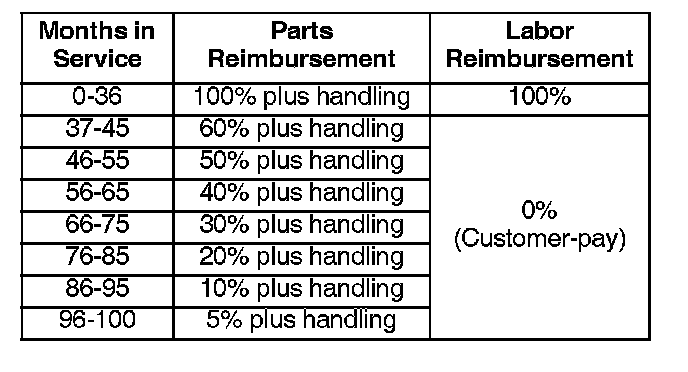Enter and submit a parts warranty claim with the information listed and the full dealer net amount. The parts and labor reimbursement is calculated according to the schedule below after the warranty claim is submitted.
