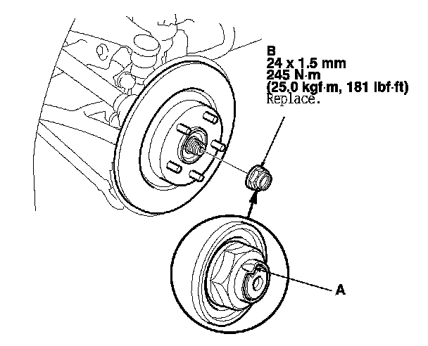 - Before installing the spindle nut, apply a small amount of engine oil to the seating surface of the nut. After tightening, use a drift to stake the spindle nut shoulder against the driveshaft.