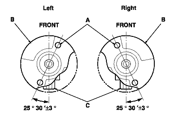 3. Position the stud bolt (A) on the damper mounting base (B) with the welded nut (C) on the bottom of the damper unit as shown.