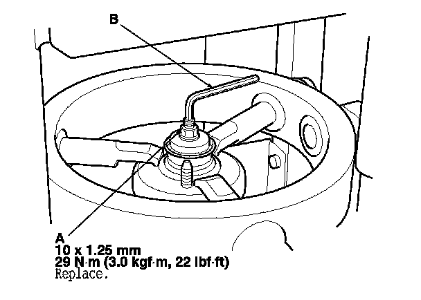 6. Hold the damper shaft with a hex wrench (B), and tighten the self-locking nut to the specified torque value.