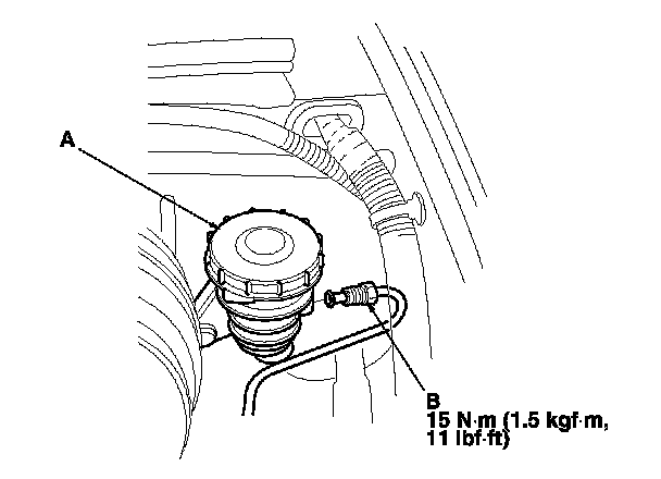1. Remove and discard the brake fluid from the clutch master cylinder reservoir (A) with a syringe or other suitable device.
