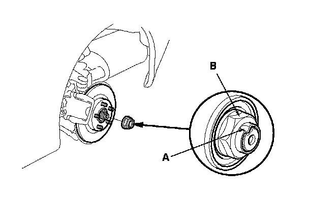 3. Lift up the locking tab (A) on the spindle nut (B), then remove the nut.
