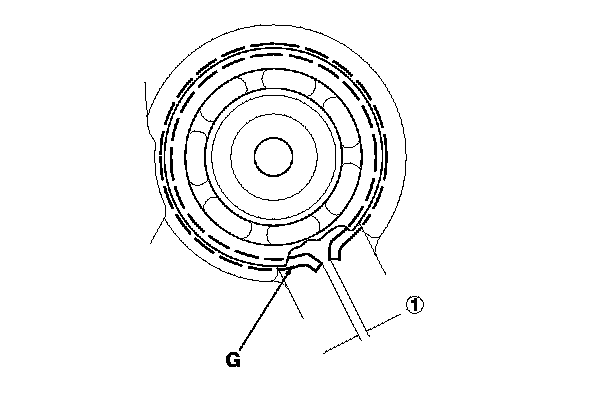 24. Apply liquid gasket, P/N 08718-0001, evenly to the mating surface of the threads of the set screws (G), then install the steel balls, the springs, and the set screws. Install the component within 5 minutes of applying the liquid gasket.