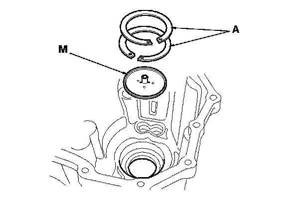 14. Install oil guide plate M and the 82 mm shim(s) (A).