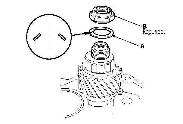 3. Install the thrust washer (A) and the 64 mm spring washer (B).