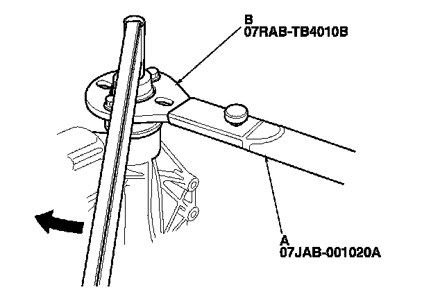 6. Install the companion flange (A) using the 40 mm inner driver handle (B) as shown.
