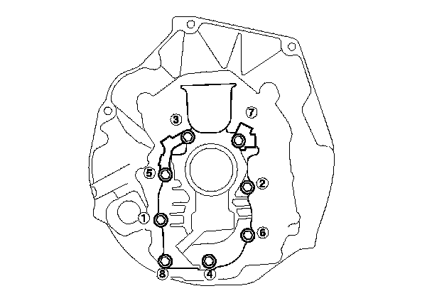20. Tighten the 8 mm flange bolts in a crisscross pattern in several steps as shown.