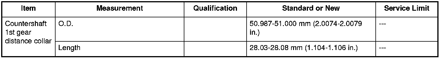 Countershaft 1st Gear Distance Collar Specifications